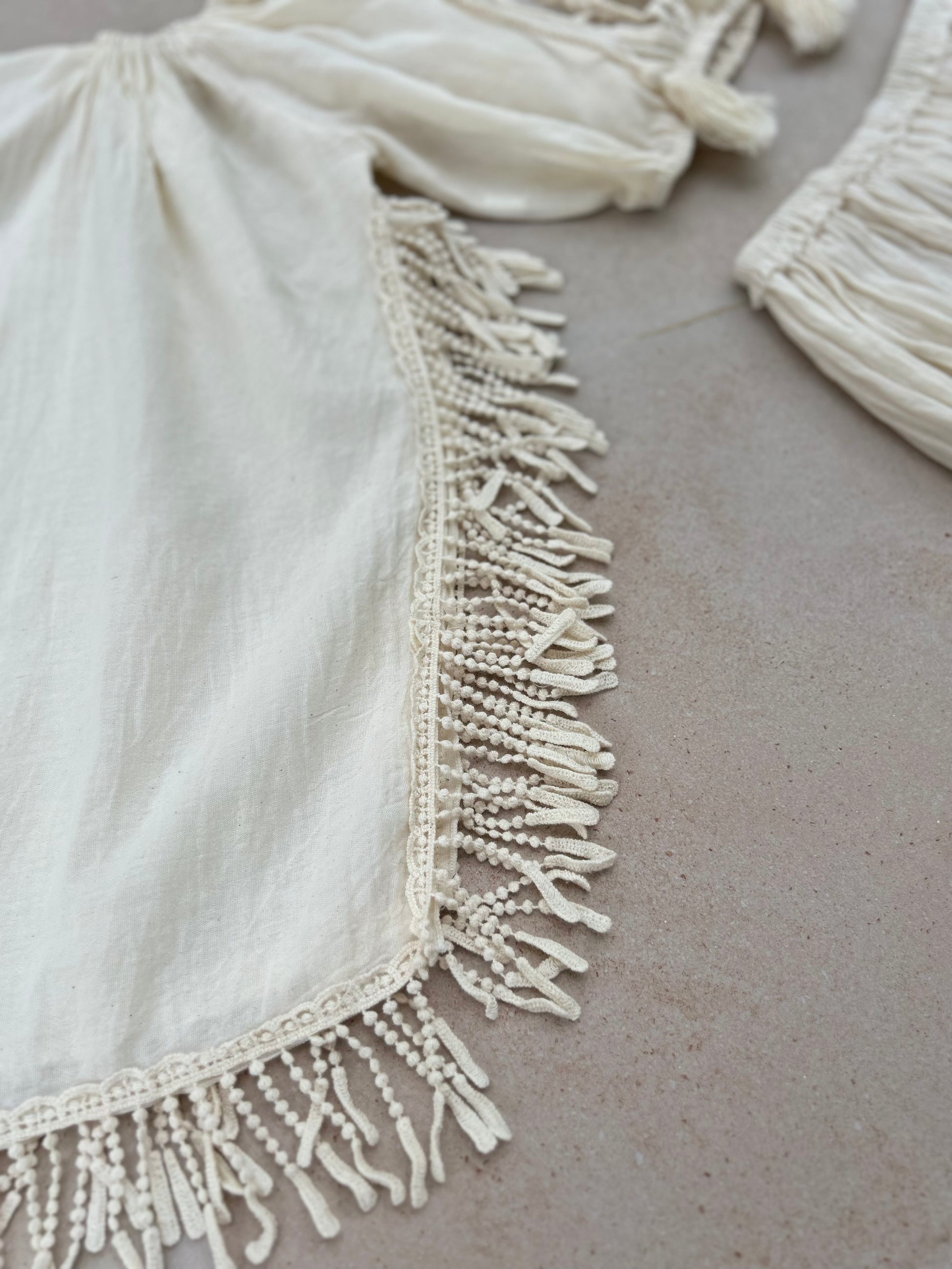Where movement meets detail. The MEADOW TOP is a limited-edition standout, featuring fringed trim sleeves that drape effortlessly along the arms for a soft, statement finish. Cut in a premium fabric blend with a flattering cropped silhouette, it’s made to elevate your everyday with ease. Designed for those who appreciate texture, flow, and one-of-a-kind style — exclusively from Dutch Collection.