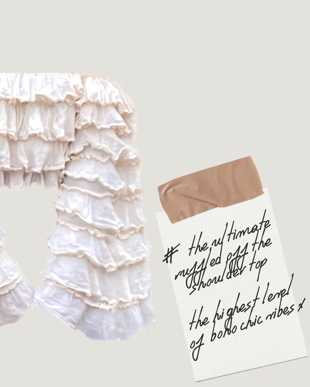 A boho-chic dream, reimagined. THE POPPY TOP is all about movement and texture, with cascading layered ruffles throughout the design that add volume, softness, and effortless charm. This cropped silhouette features all-over elasticated fittings for a flexible, flattering fit that hugs in all the right places. Whether paired with your favorite skirt or laid-back shorts, it’s your go-to for sunny days or sunset nights. Limited edition, endless ruffles